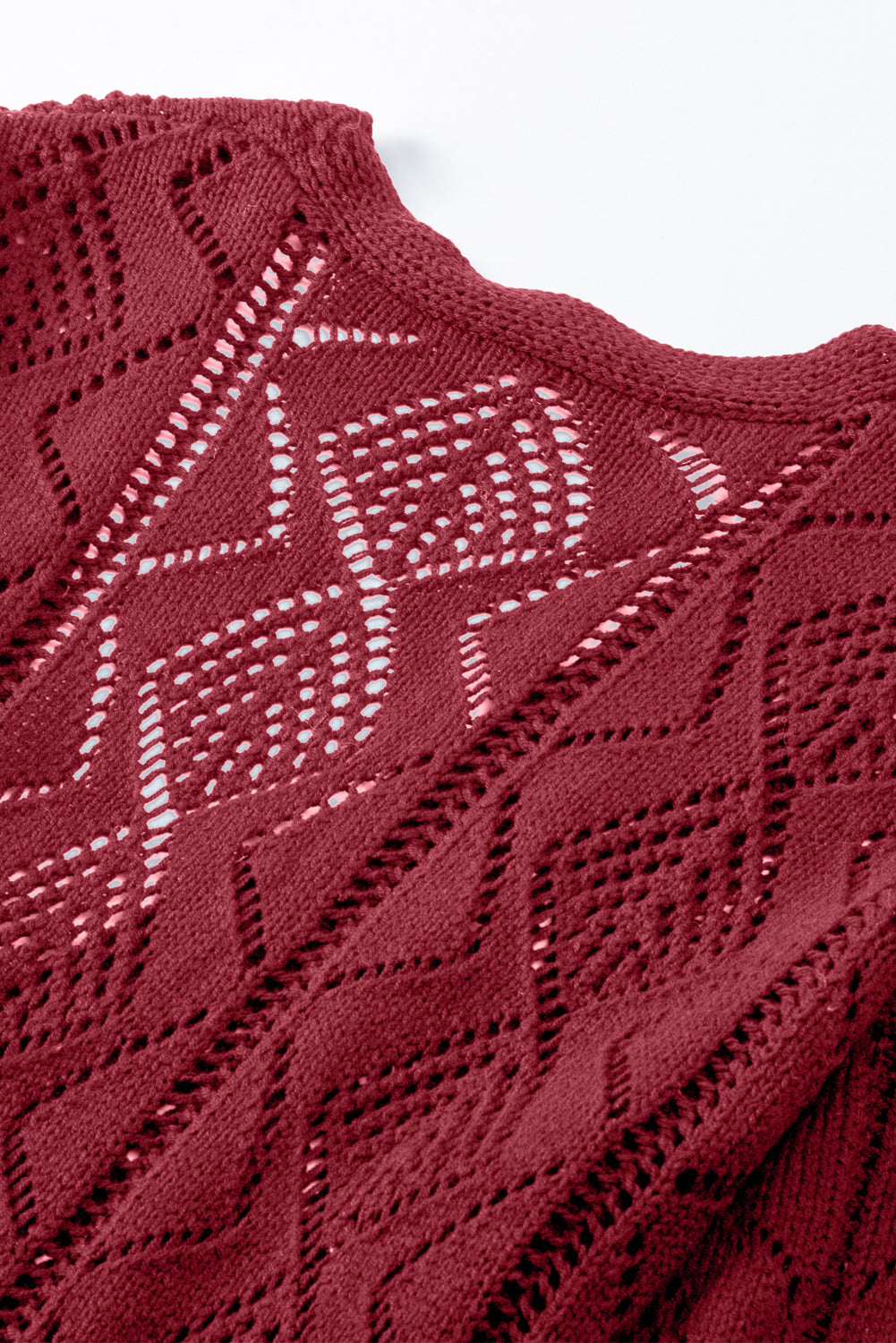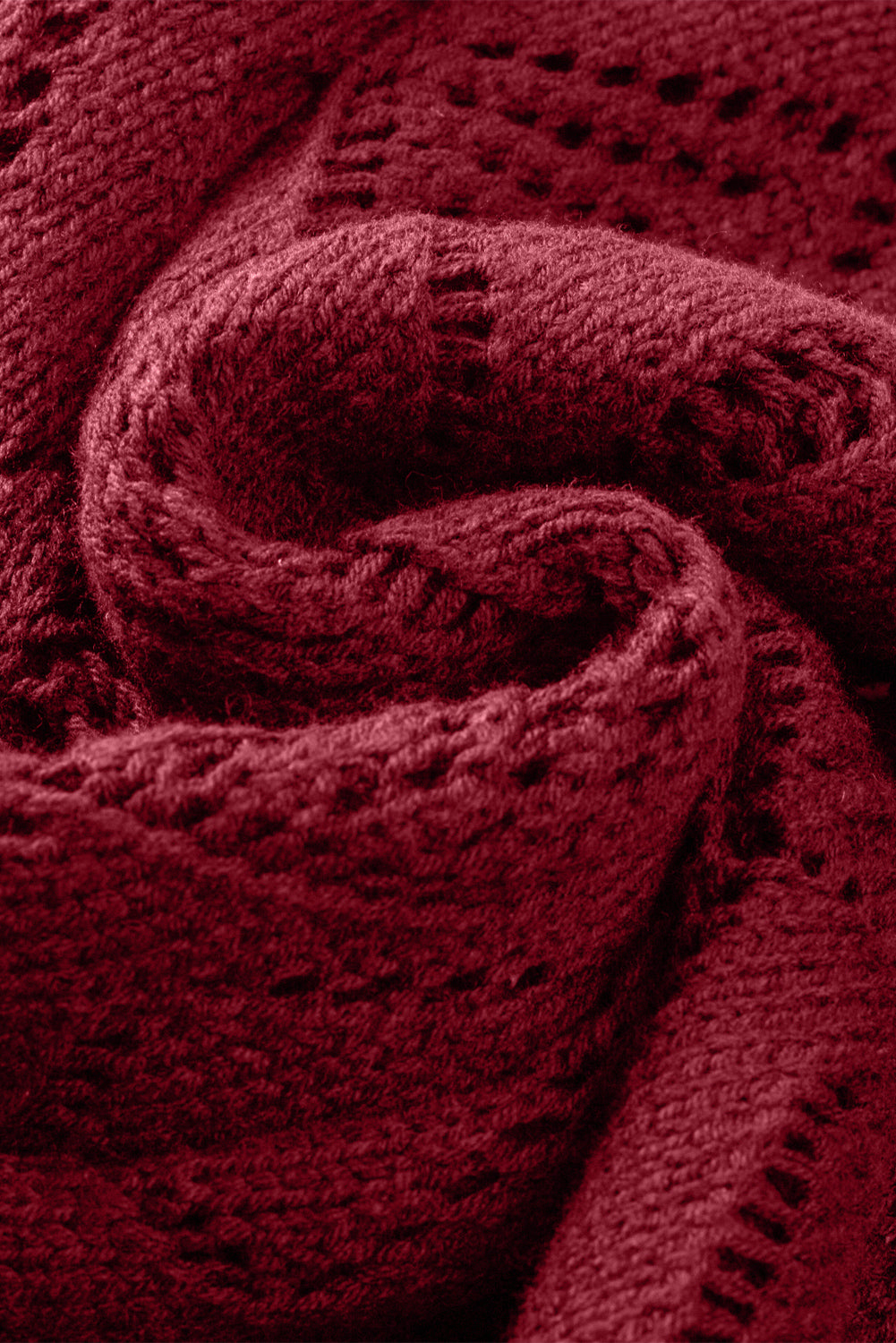 Red Button Up Hollow Out Loose Long Cardigan